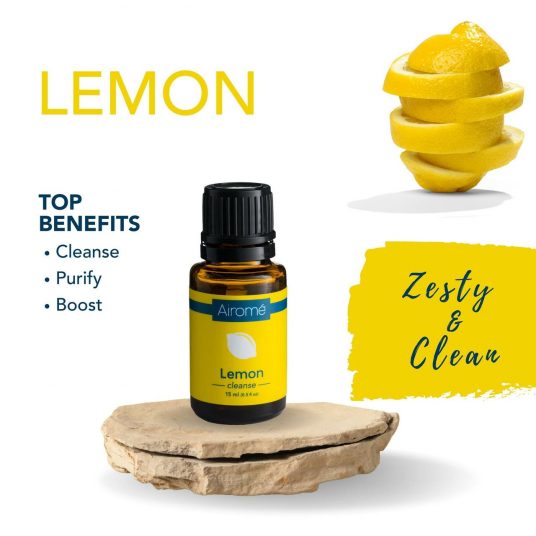 Airome Lemon essential oil is a cleansing, zesty aroma. Diffuse it to boost focus and energy and to freshen the air.