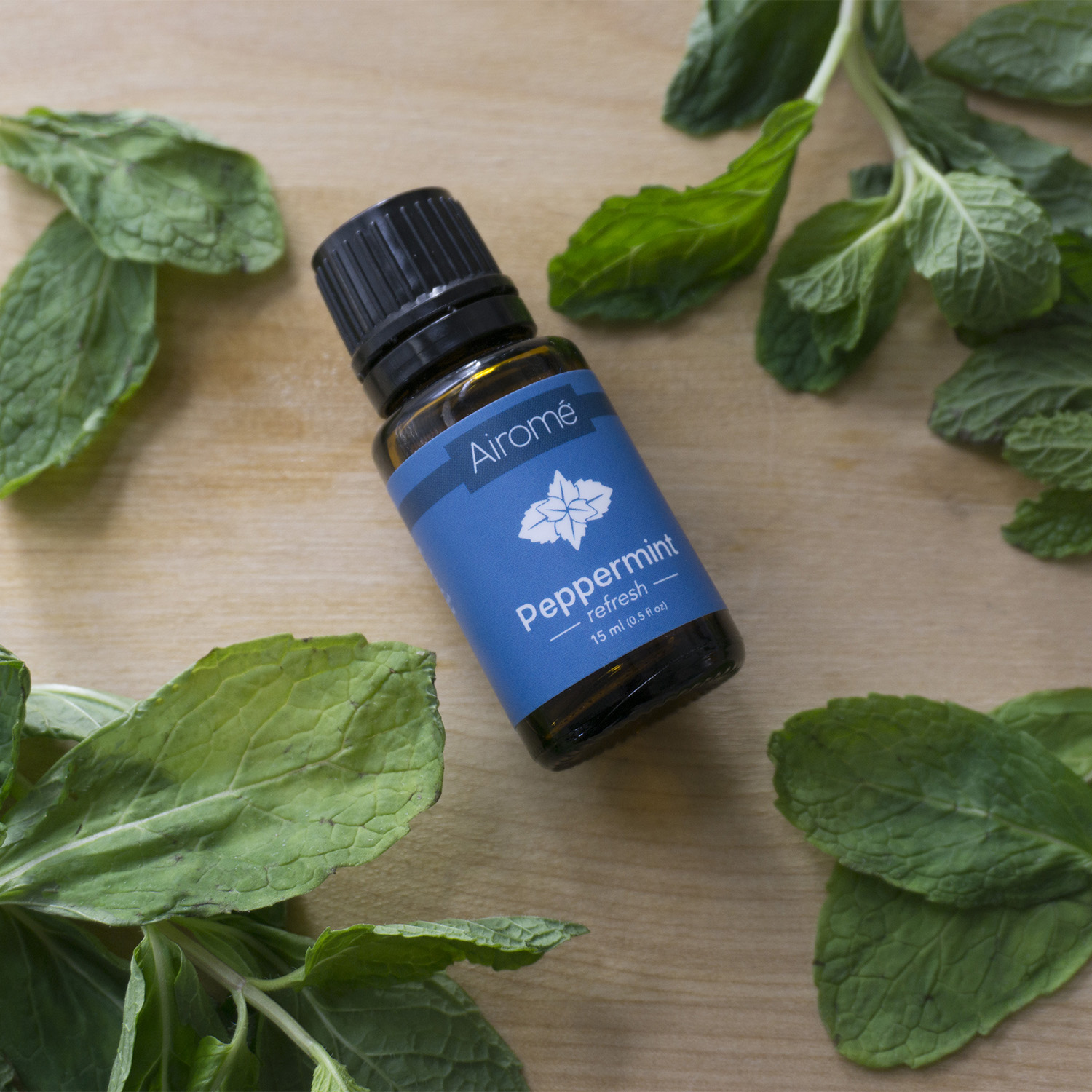 Airome Peppermint essential oil is cooling and refreshing. Diffuse this strong, minty aroma to boost focus, clarity and energy.