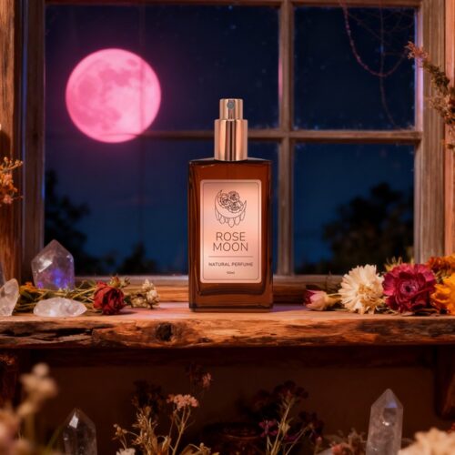 Rose Moon Rising Rose Moon Natural Perfume Spray is a soft, floral and mystical botanical fragrance inspired by the Pink Moon and the energy of renewal and blooming.